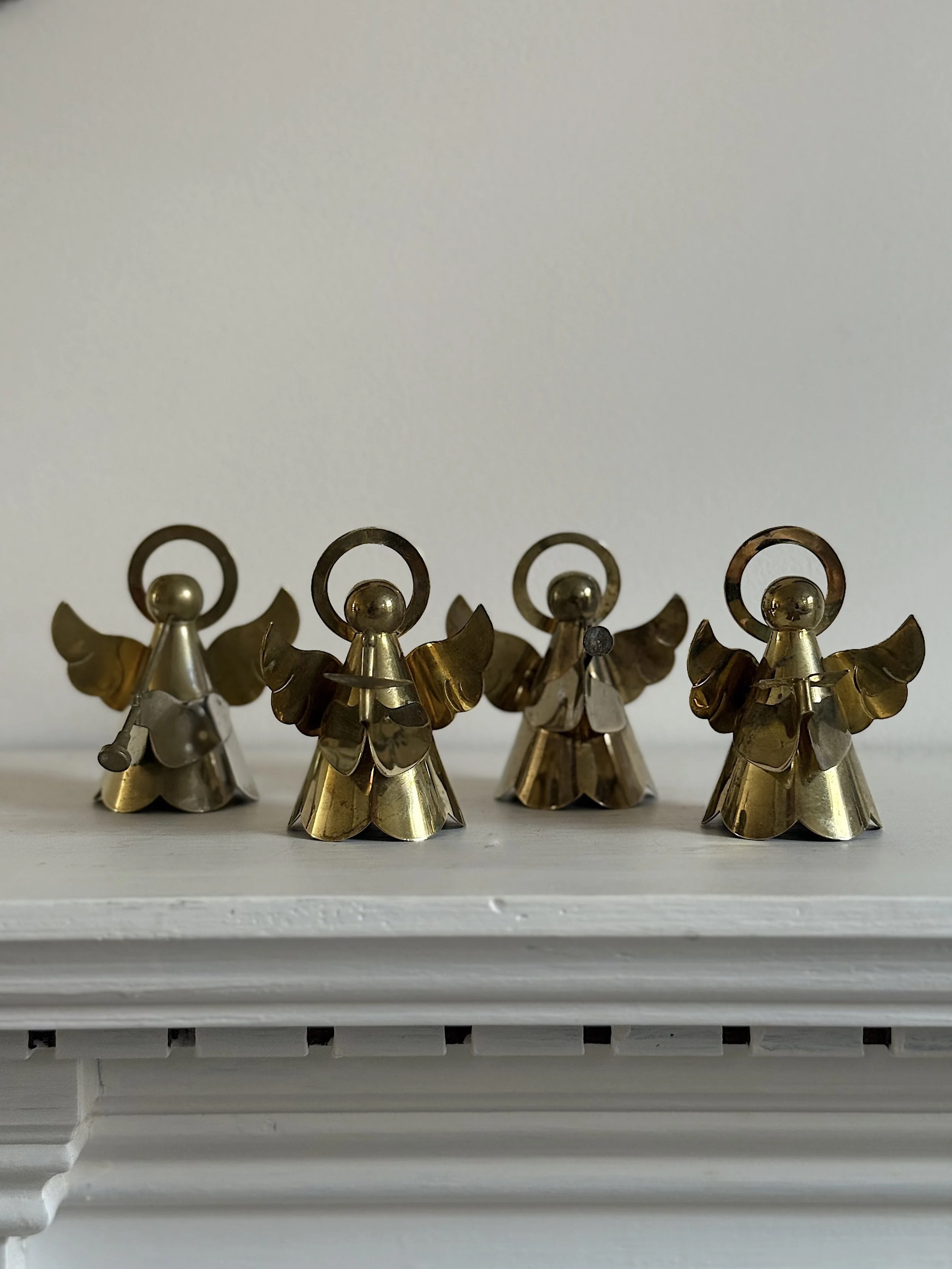 Crown tea light holder £18.00 Brass Wreath £10.00 Brass scalloped candle holder pair £16.00 Jester hat candle snuffer £22.00 Sold Out Brass cut out stars £18.00 Sold Out Metal angel choir - two sets available £22.00 Sold Out Art deco amber glass bowl £24.00 Sold Out Brass star £9.00 Sold Out Metal angels - available separately £7.00 Sold Out Brass Tin Angel Choir £28.00 Sold Out Brass wreath candleholder - two available £30.00 Sold Out Brass Star candle holders - available separately £26.00 Sold Out Swedish design glass candle holder £30.00 Sold Out Brass christmas tree £8.00 Sold Out Brass moon face £8.00 Sold Out